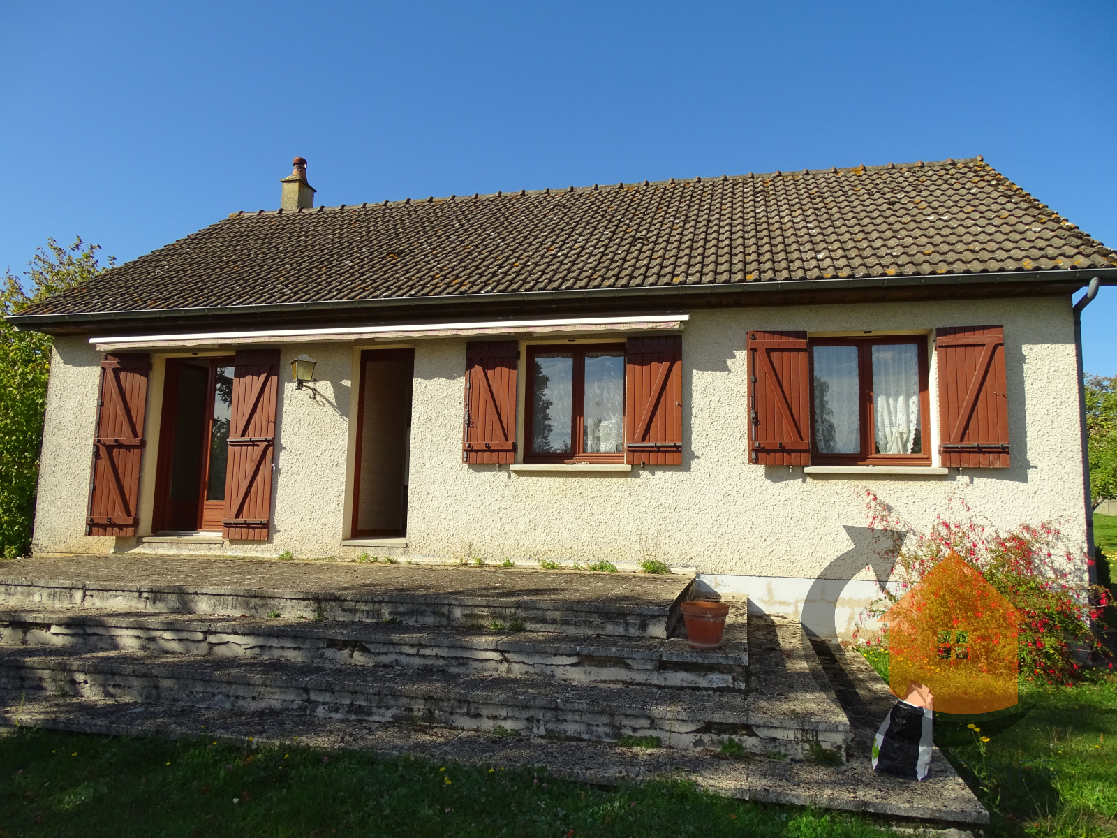 Charmante maison fin 70 sur sous-sol total. Elle est composée d'une pièce à vivre lumineuse avec cheminée insert, cuisine aménagée et équipée fermée, salle de bains et WC séparés dégagement desservant 2 chambres. Chauffage électrique. Tout à l'égoût. Le tout édifié sur un terrain d'environ 931 m². FAIRE VITE !! IDÉAL 1ER ACHAT