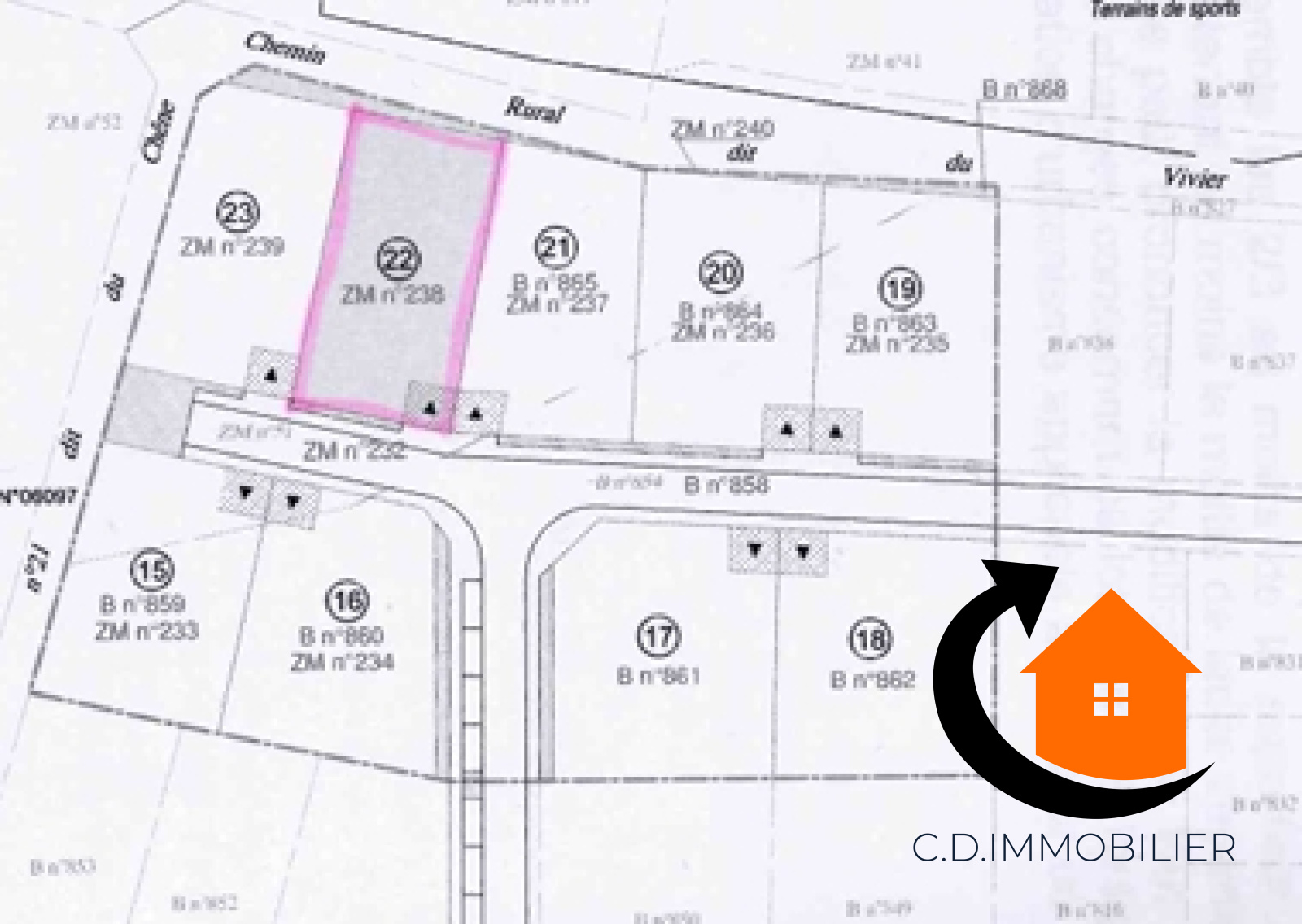 Venez dĂ©couvrir ce lotissement avec terrains viabilisĂ©s. Ici le lot 22 pour une superficie de 609 m². Comprend 2 places de parking exterieur.Â